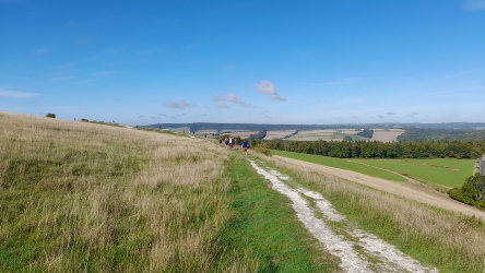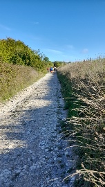 Progressing nicely through Chichester northwards, the uphill section started, a total climb of 840feet, an average of 66feet a mile. At first I thought it was not too bad. However, at around the 4-mile mark the climb got much steeper. Towards the end, I decided to walk the last section, up a worn chalk and flint track which was an injury waiting to happen and I had still yet to complete my 5,000miles in 1,000days challenge.
