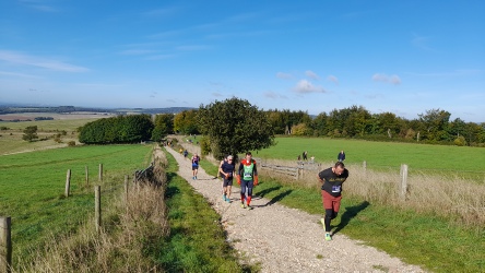 Next up, even more uphill running but on grass now to the Trundle. Well worth the climb for the views alone. I stopped several times to take photos, much to the annoyance of Spiderman, who I then flew past again afterwards. Once round the Trundle, the downhill section of the half marathon began - what goes up must come down. I decided that as it was as steep downhill I would just run as fast as my legs could move, I covered 1km in under 5 minutes with a speed of 7.5 miles an hour! Most of the downhill sections I just flew, being careful where I put my feet and taking into account where I needed to start slowing down.