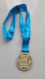 As I came back into Chichester again, families with young children offered support and encouragement which was nice. I managed to catch up and pass several of the runners that had passed me on the hill climb walk, but I ran out of steam towards the end. Having crossed the finish gate, I accepted my wooden medal and a welcome cup of water (water is provide at various points but only in disposable plastic cups. I filled my bottle with three cups). I turned around and was amazed at the time clock indicated 2 hours 8 minutes and change. I even asked if that was the current finish time…..it was.